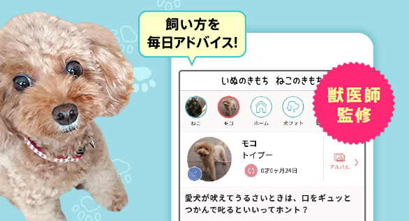 犬齢ピッタリの情報を毎日お届け。写真投稿、アンケート、動物病院など、役立つ情報満載。飼い主さん、犬好きさん必携のアプリ!