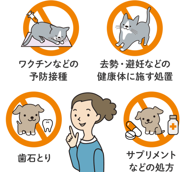 ● 健康診断費用、症状を伴わない血液検査・糞便検査費用 等
