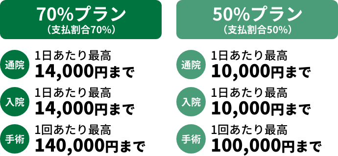「支払割合70%」「支払割合50%」の