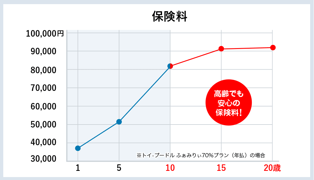 犬の平均寿命は12~15年と言われているため、長く保険料を支払える保険を選ぶ必要があります。保険によっては、若い頃は安くても急激に保険料が上がってしまう商品も。アニコム損保の保険なら、特に保険が必要になる高齢時も、保険料の上がり方が緩やかなので、安心して利用することが可能です。