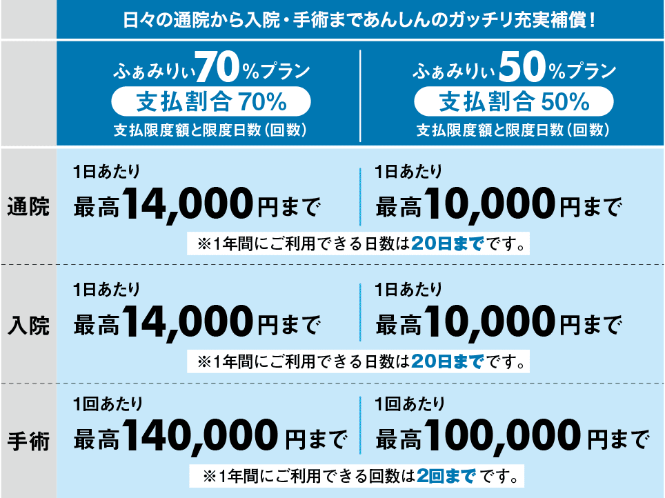 *2 保険金はプランにより保険の対象となる診療費の支払限度および限度日数(回数)の範囲内でお支払いします。