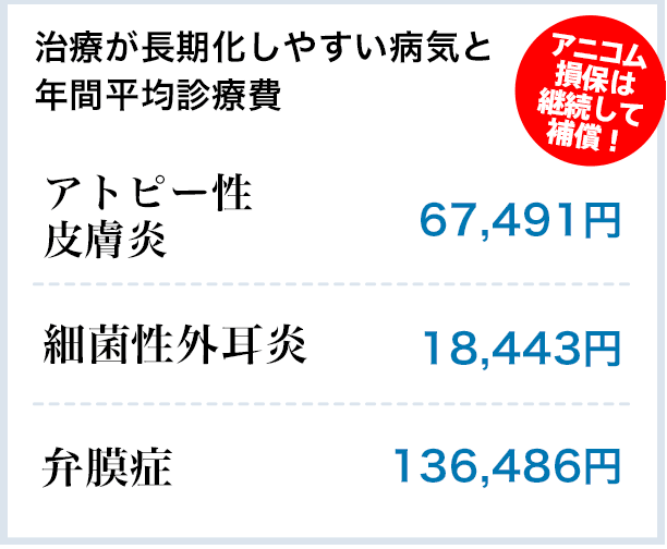 また、診療に伴う検査費用や薬費用、入院時の給餌費用も保険金の対象になるので飼い主さんの経済的な負担を減らし、愛犬の治療の選択肢が広がります。