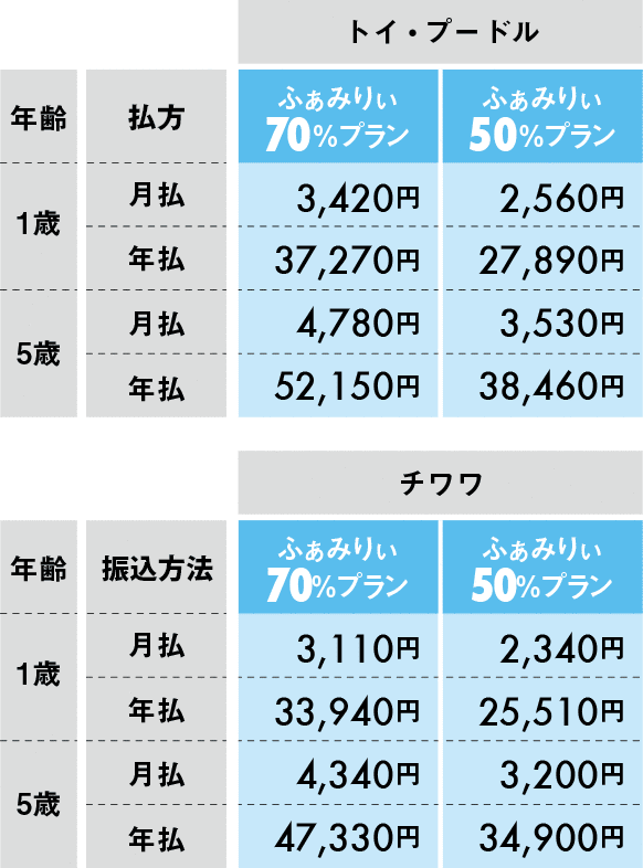*5 ・1頭目のご契約に多頭割引は適用しません。