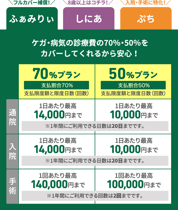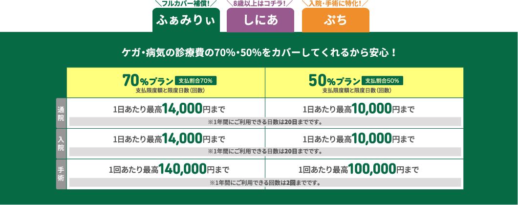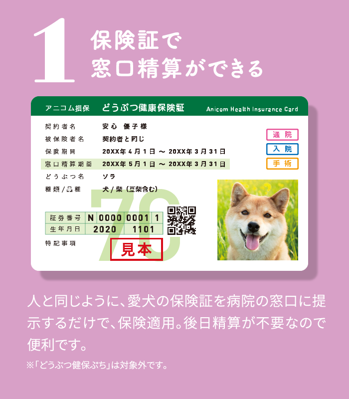 ※2「どうぶつ健保」対応病院での診療費に限ります。ただし、「どうぶつ健保」対応病院からの紹介があった場合、入院・手術の診療費のみ保険の対象となります。