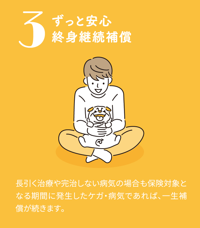 どちらのお手続きでも、補償開始日から30日間はケガのみの補償となり(待機期間)、病気は31日目以降(待機期間終了後)に発症した症状から補償対象となりますので早めにお手続きください。