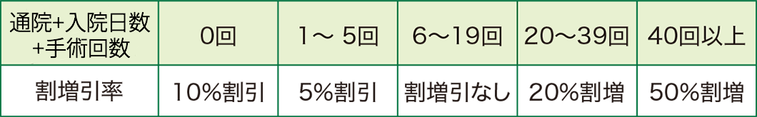 「どうぶつ健保ふぁみりぃ」では、保険の利用状況によって割増引を適用いたします。割増引率と判定期間については以下のとおりとなります。