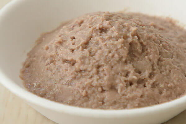 離乳食には温めたウェットフードとミルクを1対1で混ぜておかゆにした食事を。徐々にミルクを減らしてウェットのみに替える。