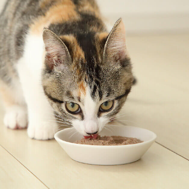 成猫用のフードに切り替え。食のこだわりが強い場合は子猫用に成猫用を10〜20%混ぜて徐々に増やし、数日かけて切り替える。