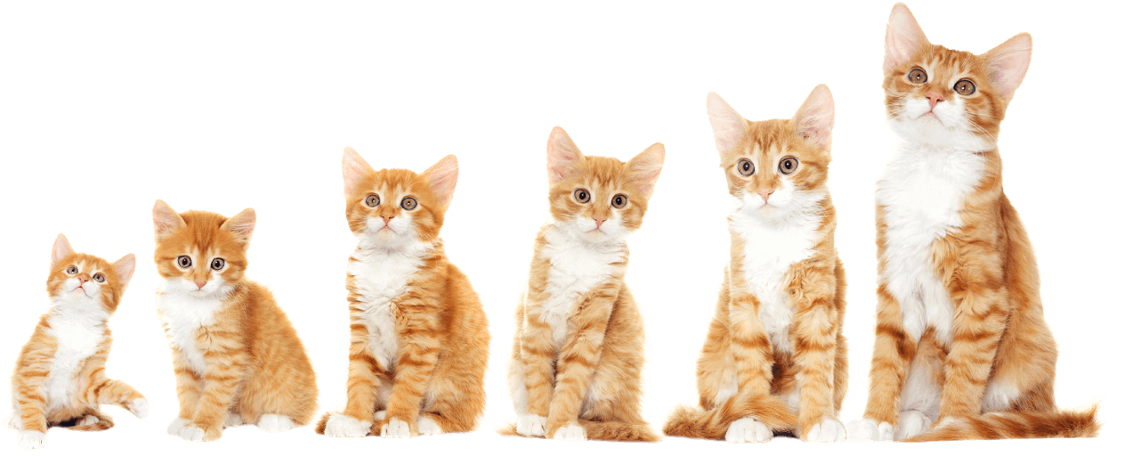 生まれたばかりの子猫は100gほどですが、3カ月で1500gまで急激に成長し、1才で4kg前後の成猫になります。成長期は栄養要求量が高いので、タンパク質が多い子猫用のフードを選ぶことが大切。栄養やカロリーが不足すると発育が滞り、成長不良になってしまいます。子猫が健康で幸せな生涯を送れるように、適切な食事選びから始めましょう。